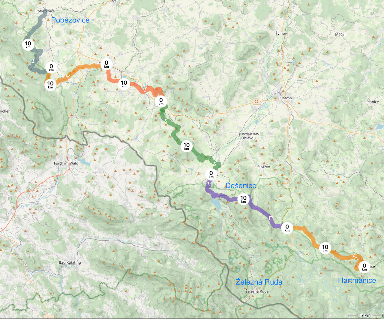 Bovenstaand een overzicht van trajecten 8 tot en met 13 van de Zlatá stezka, via deze pagina te vinden.