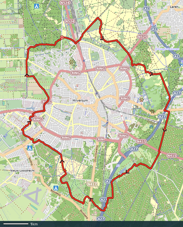 Dit 25 km lange historische wandelpad werd al in 1939 rond Hilversum aangelegd met als doel "een ongebaand, bewegwijzerd pad, waarop de wandelaar het gevoel zal hebben door bosch en heide te zwerven".