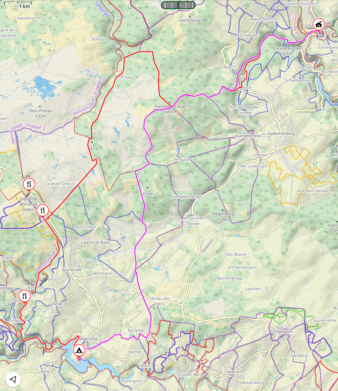 Op zaterdag lopen we van Robertville naar Monschau en op zondag keren we weer terug. De afstand van de voorgestelde route hangt af van de sneeuwconditie.